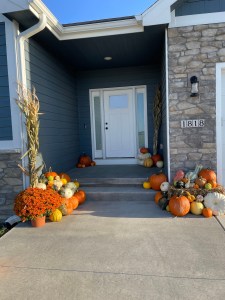 We are Bryan and Stephanie Collins, and we have lived in the Des Moines area our entire lives. We have always loved decorating the outside of our home, whether it’s for Fall, Christmas, or placing beautiful flowers around our home. In a desire to share that love with others, Seasonal Porches was born by focusing on bringing the natural elements and beautiful Fall colors to your front porch using Pumpkins, mums, hay bales, and corn stalks.